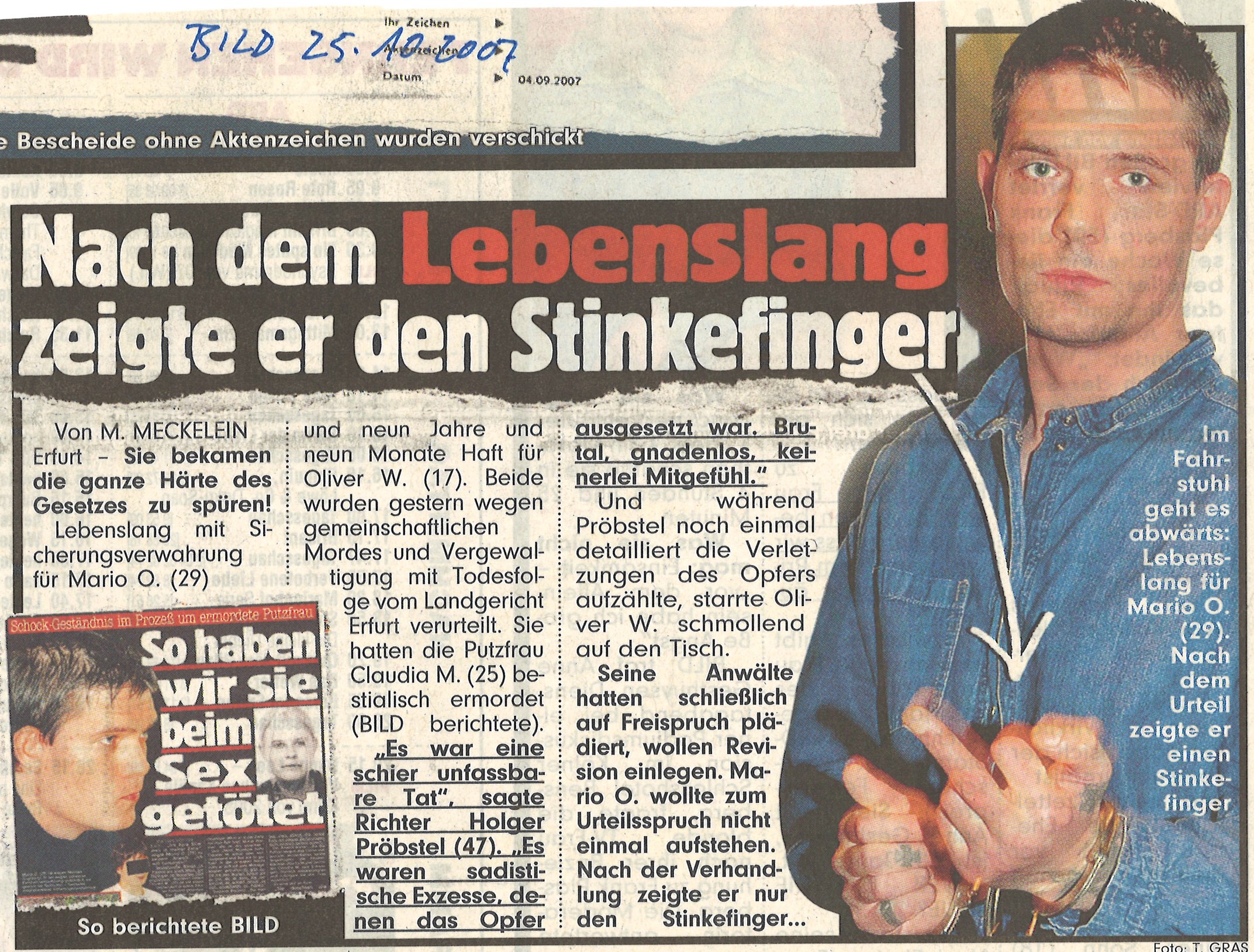 - Nachdem Lebenslang zeigte er den Stinkefinger (Bild vom 25.10.2007)